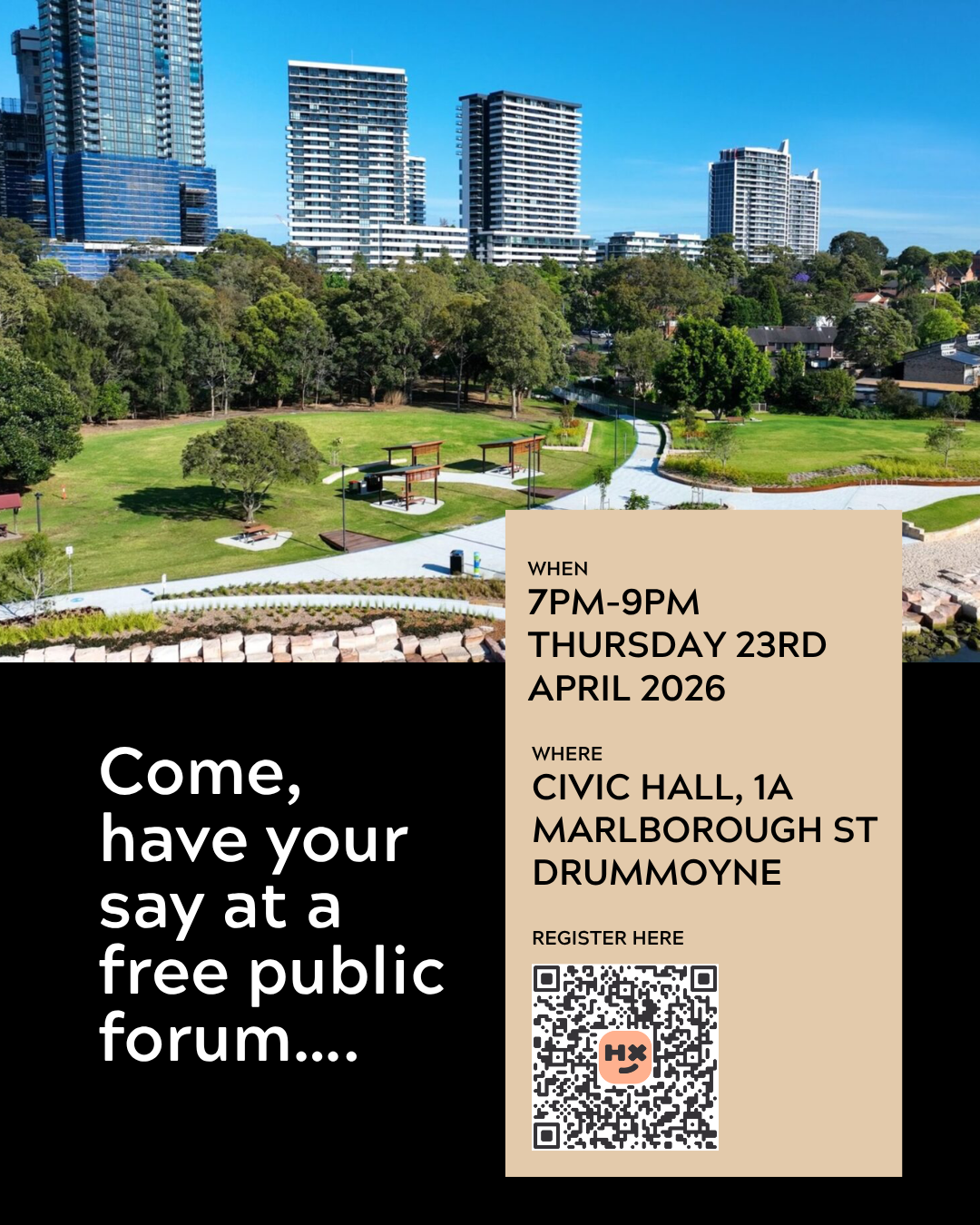 Many Canada Bay residents are feeling under siege. With two TODs (Homebush and North Strathfield), an ever-increasing number of State Significant Developments and ‘Low and Medium Rise’ (LMR) zonings seeing 9-storey development proposals throughout the LGA, the changes are dramatic. We all need housing, and density must increase. But is there a better way? What can be done? What should be done? Come, have your say at our free public forum.